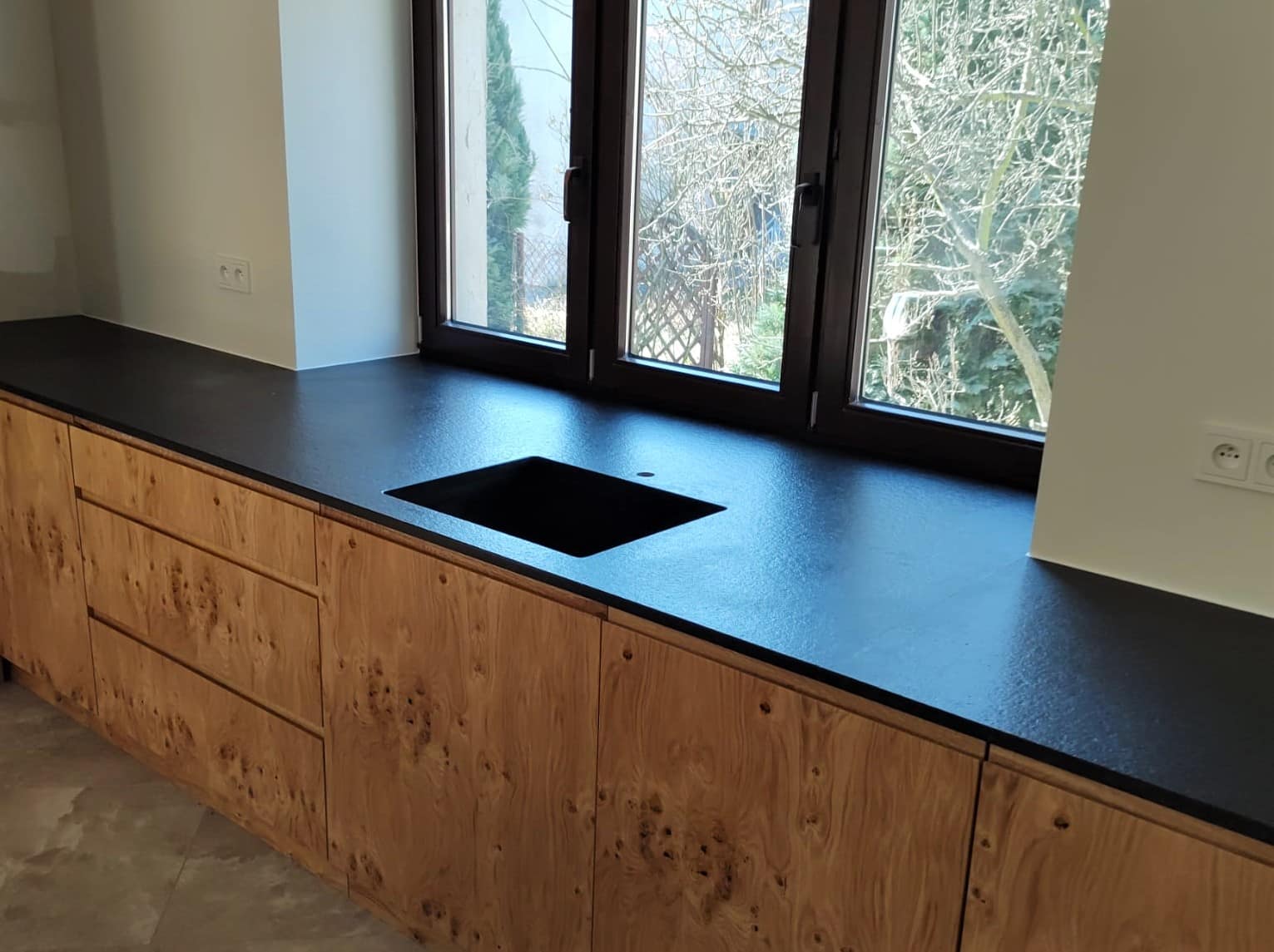 Grupa: blat granitowy | blat kuchenny | granit | kuchnia | nero assoluto | parapet | zlew podwieszany