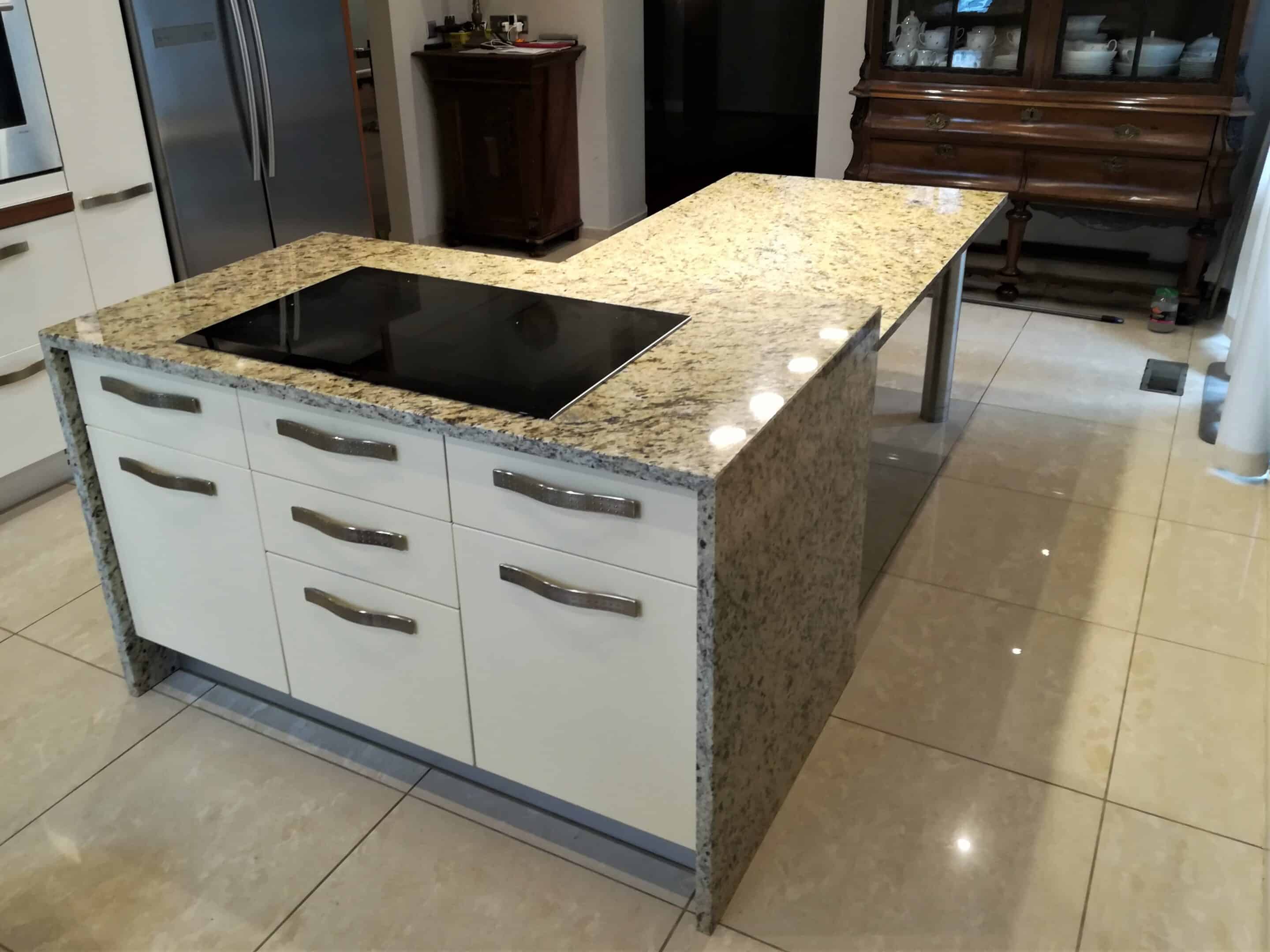 Grupa: blat granitowy | blat kuchenny | jadalnia | kuchnia | łączenie 45 | stół | wyspa