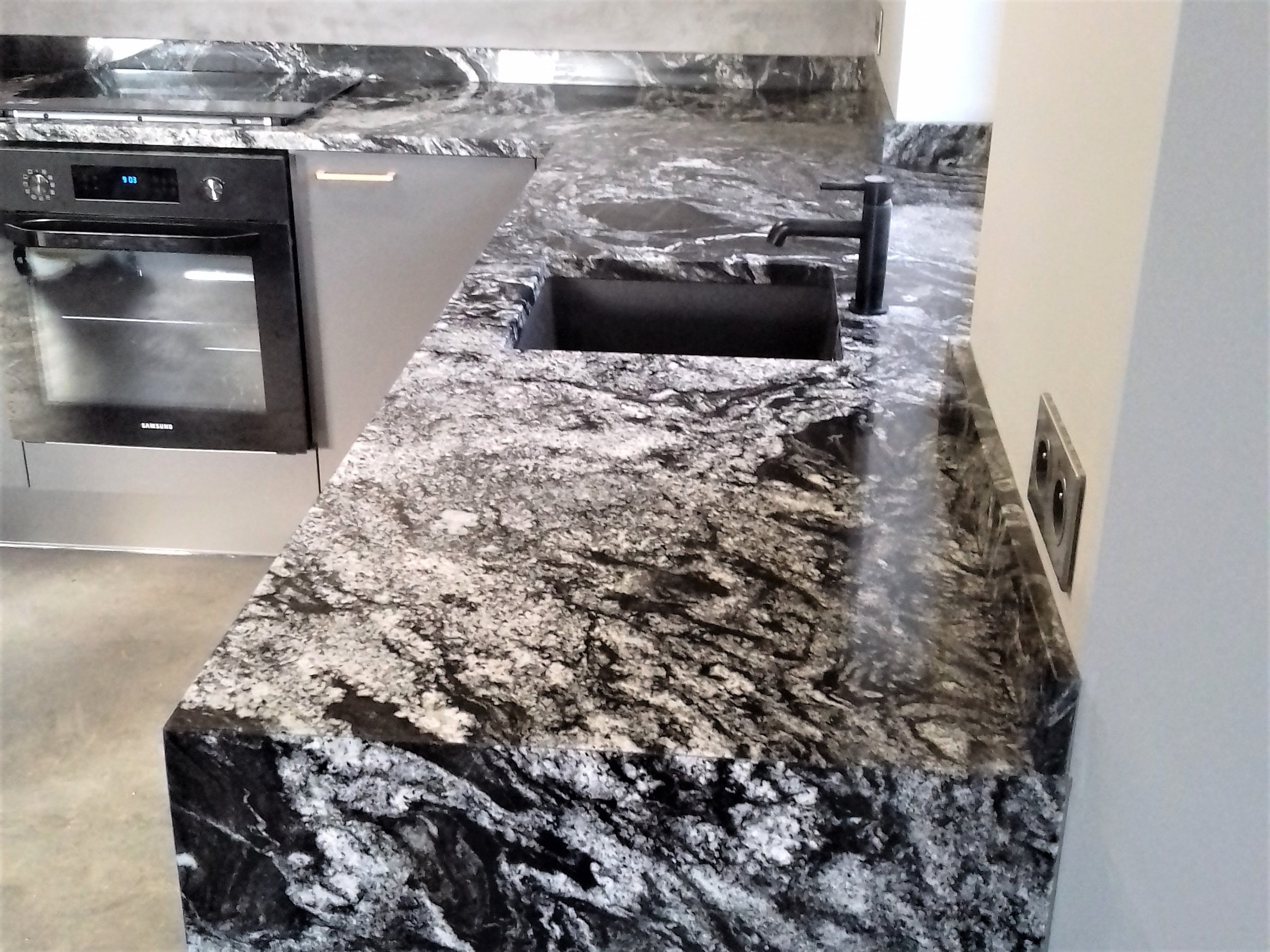 Grupa: blat granitowy | blat kuchenny | forest black | kuchnia | łączenie 45 | zlew podwieszany