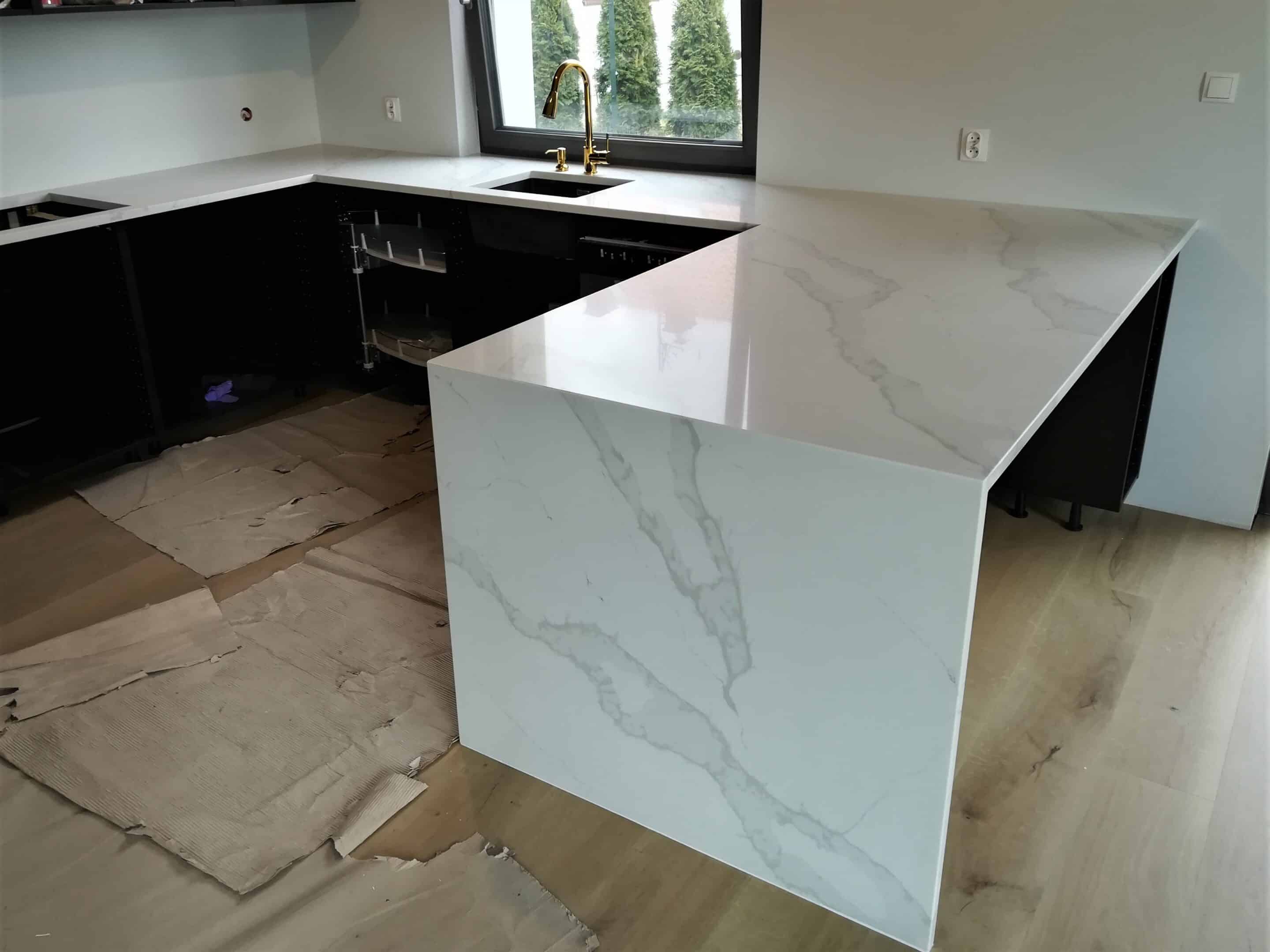 Grupa: blat kuchenny | blat z konglomeratu | calacatta | kuchnia | łączenie 45