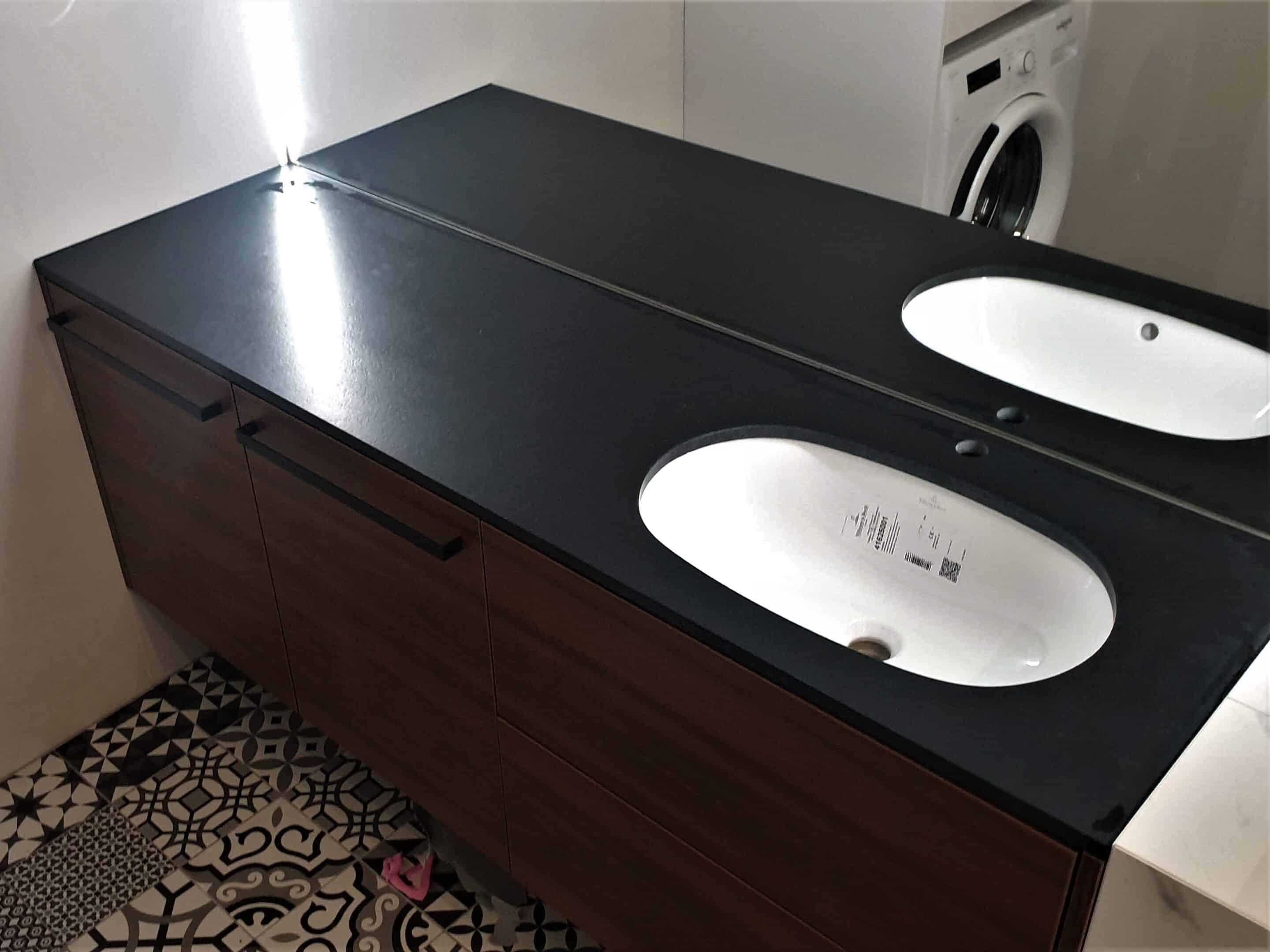 Grupa: blat granitowy | blat łazienkowy | łazienka | nero assoluto | umywalka podwieszana